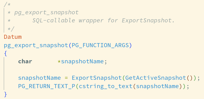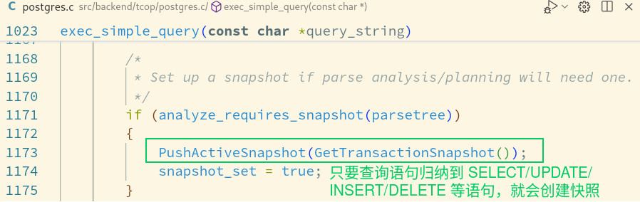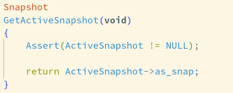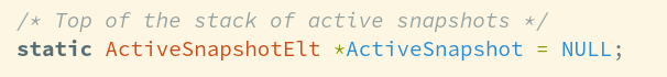 而 PostgreSQL 的 SnapShot,实际上被组织为栈的方式,参考如下: