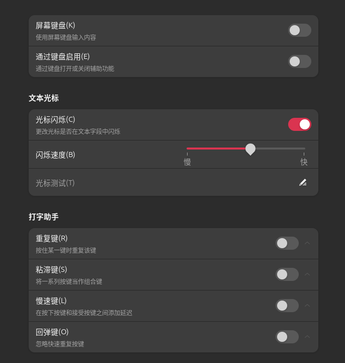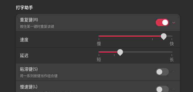 而我们又都知道,重复输入内容其实又是一个非常少见的行为(而且复制粘贴很大程度上可以替代这种重复输入),因此我们可以直接关闭重复键。