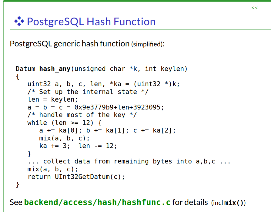 PostgreSQL 的哈希算法几乎照搬这个论文。